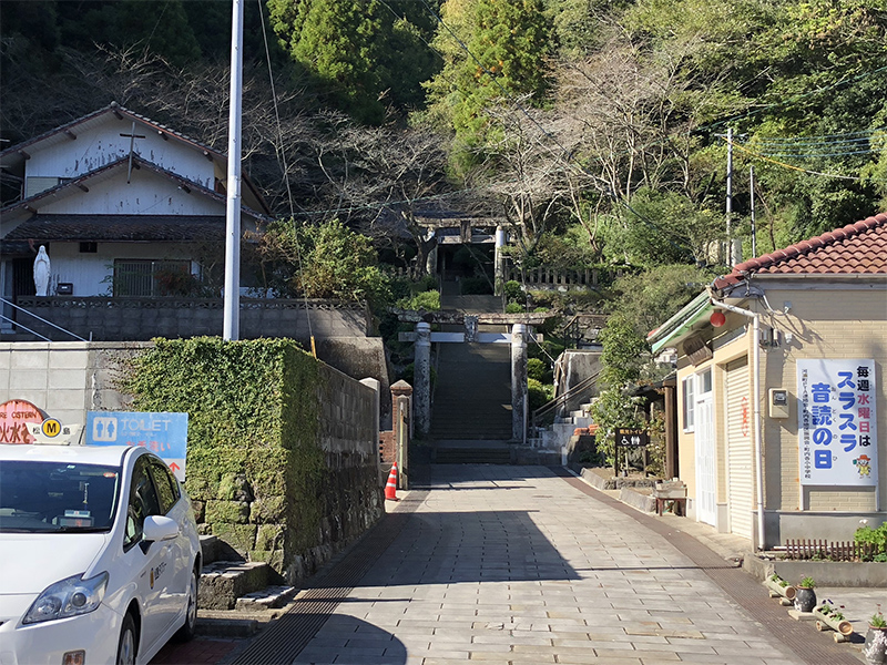 プレゼンテーションの前に、まず初めに、この遺産の構成資産の1つである崎津集落に訪問させていただきました。